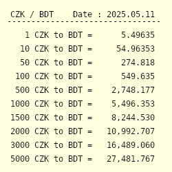 Convert czech koruna (czk) to bangladeshi taka (bdt) 1 czech koruna = 3.9325 bangladeshi taka.